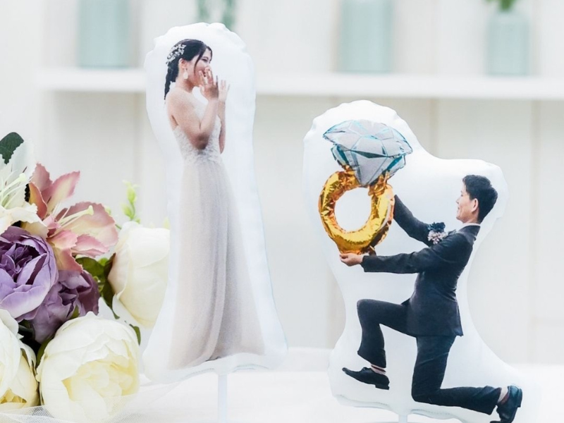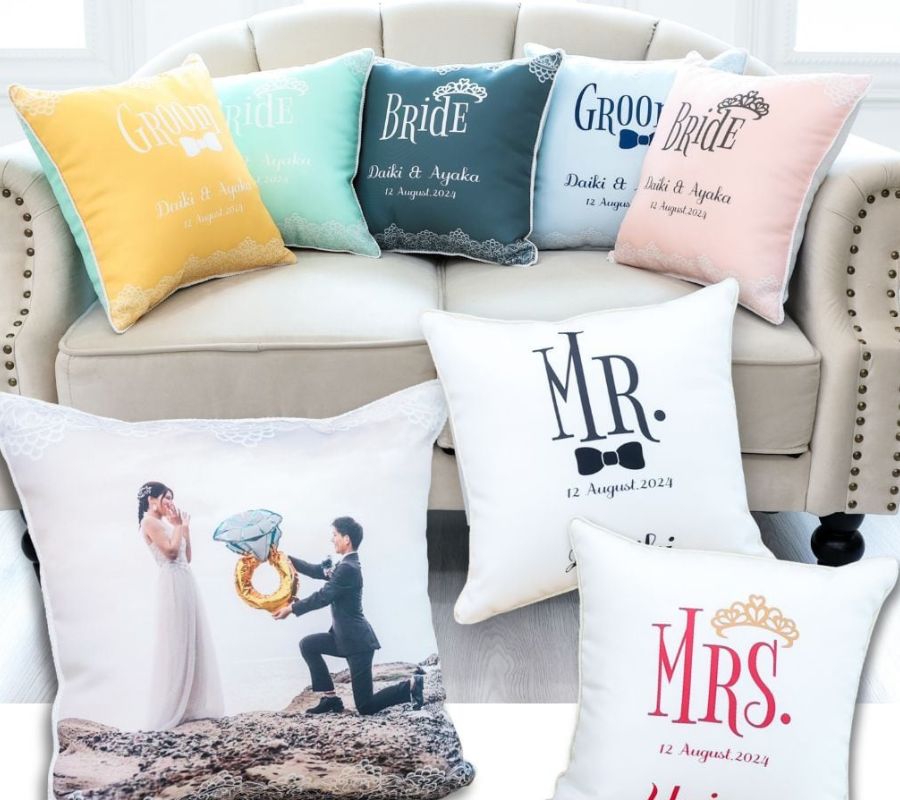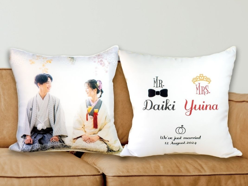 思い出の一瞬を再現したクッションは、ゲストの視線を集める注目の存在です。