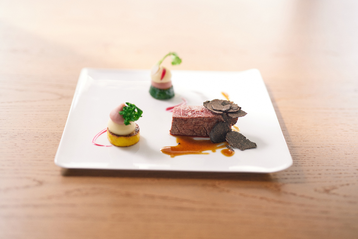 ・メインの"北海道産白老牛"は一頭買いでしか手に入らないレア品種で契約業者から直送、質のいい脂身と味の濃い赤身のバランスが良い